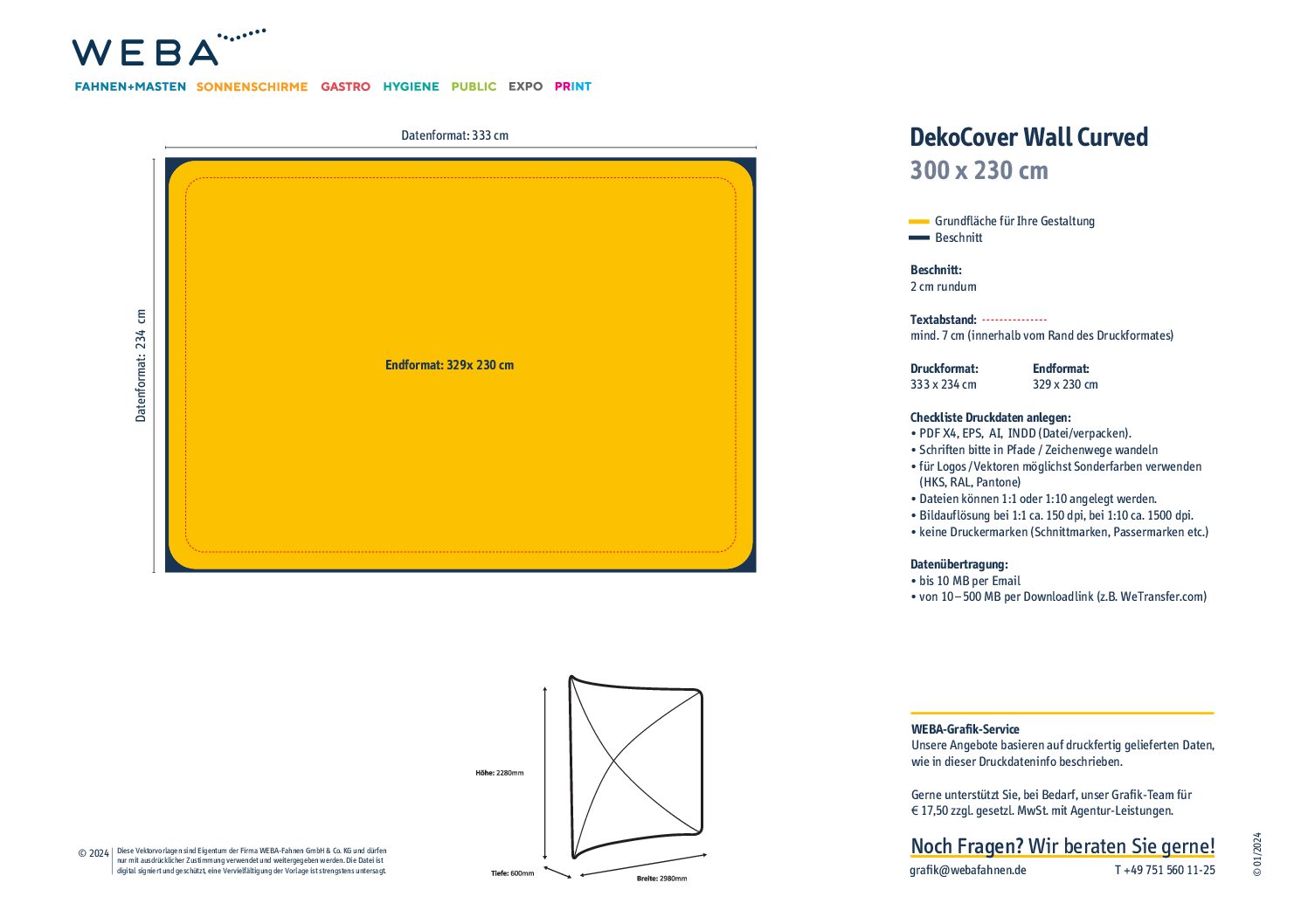 Druckdateninformation und Schnittvorlage DekoCover Wall Curved 300 x 230