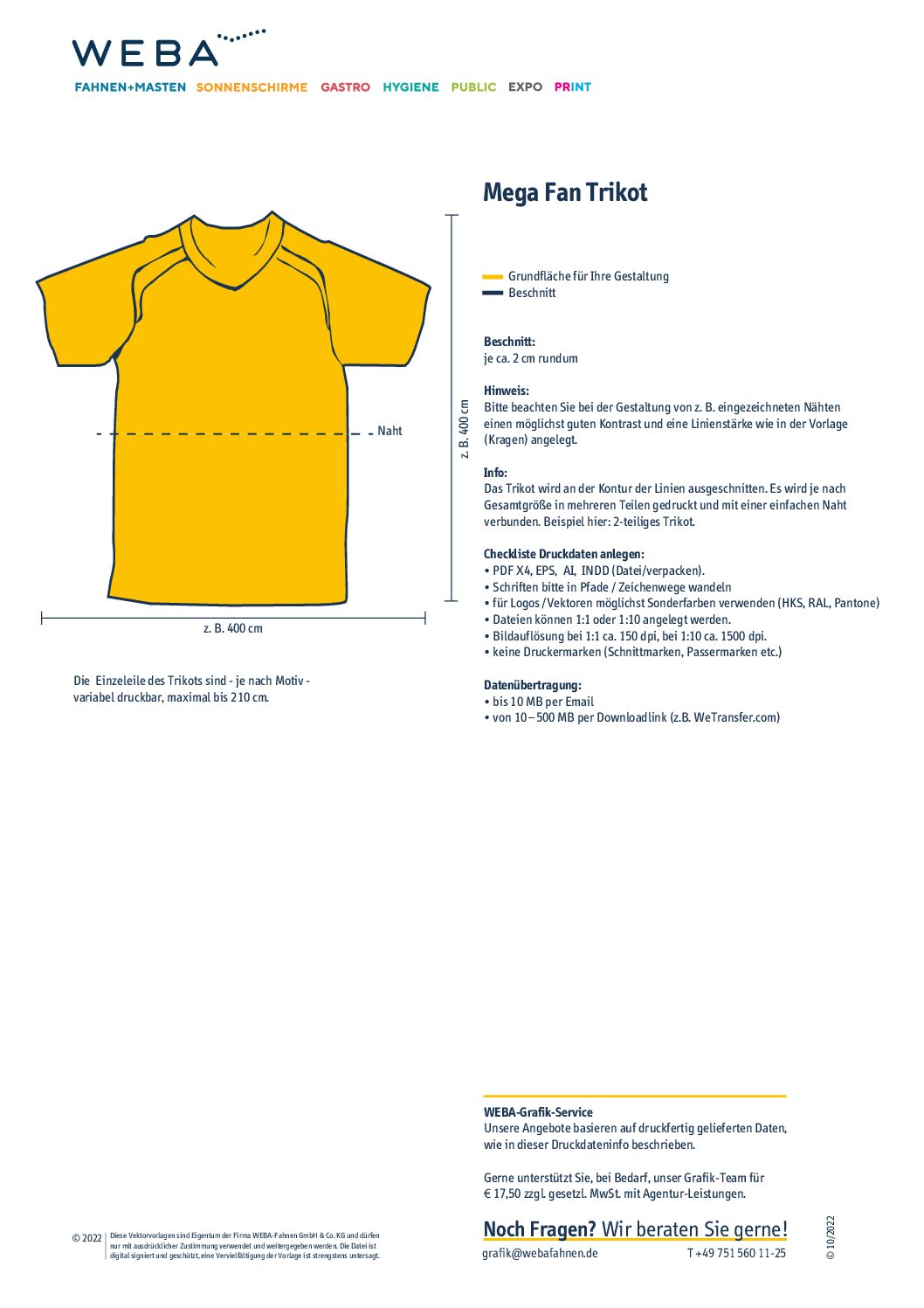Druckdateninformation und Schnittvorlage – Megafantrikot