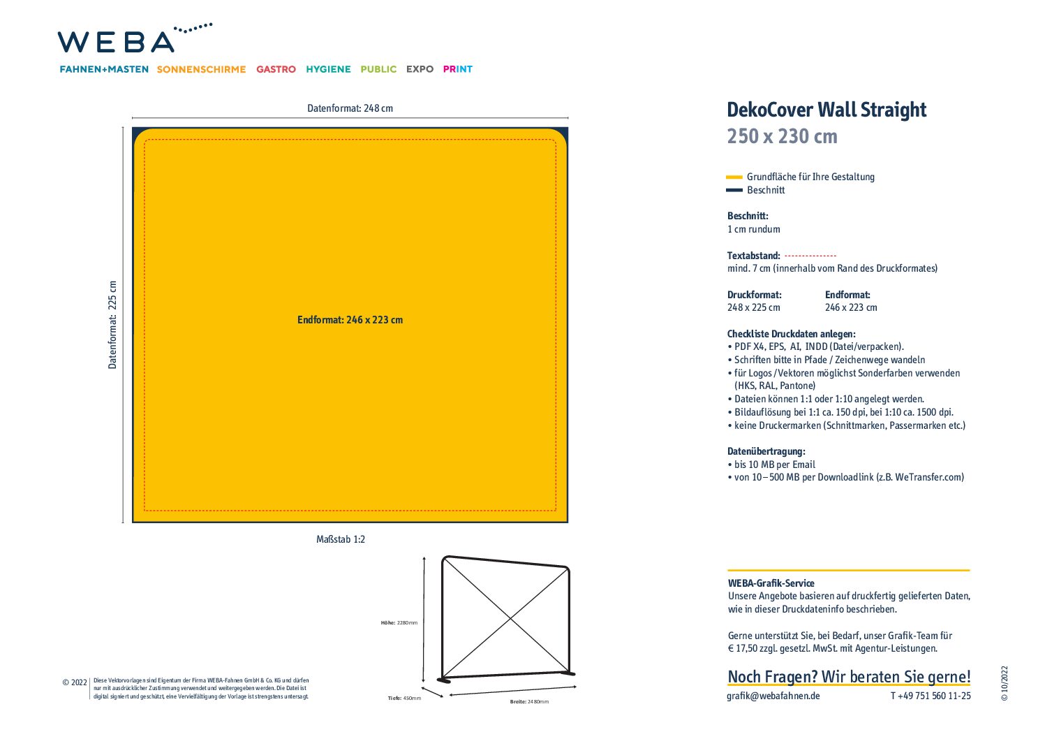 14 Okt. Druckdateninformation und Schnittvorlage DekoCover Wall Straight 250 x 230 cm DekoCover Wall Straight 250x230 cm Die DekoCover Wall Straight ist Ihre textile Spannwand für professionelle Auftritte mit Stil. Ob ei... Weiterlesen