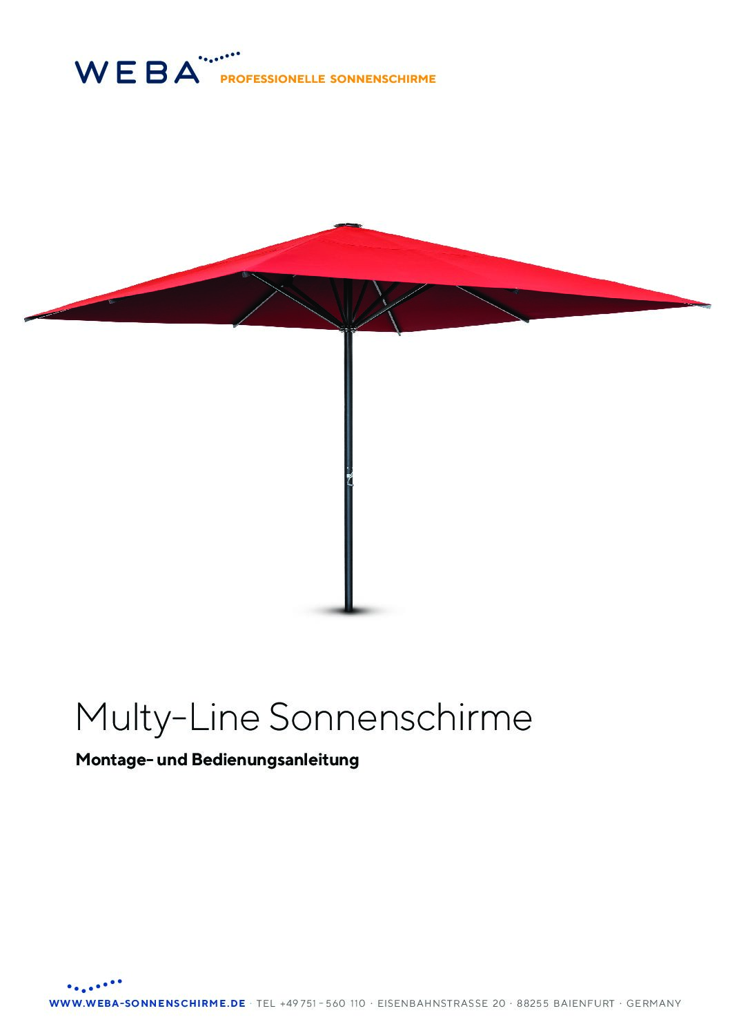 14 Okt. Multy-Line Sonnenschirme – Montage- und Bedienungsanleitung Multy-Line Sonnenschirme - Montage- und Bedienungsanleitung Informationen zum Produkt: Produktbeschreibung Der Sonnenschirm dient zu... Weiterlesen